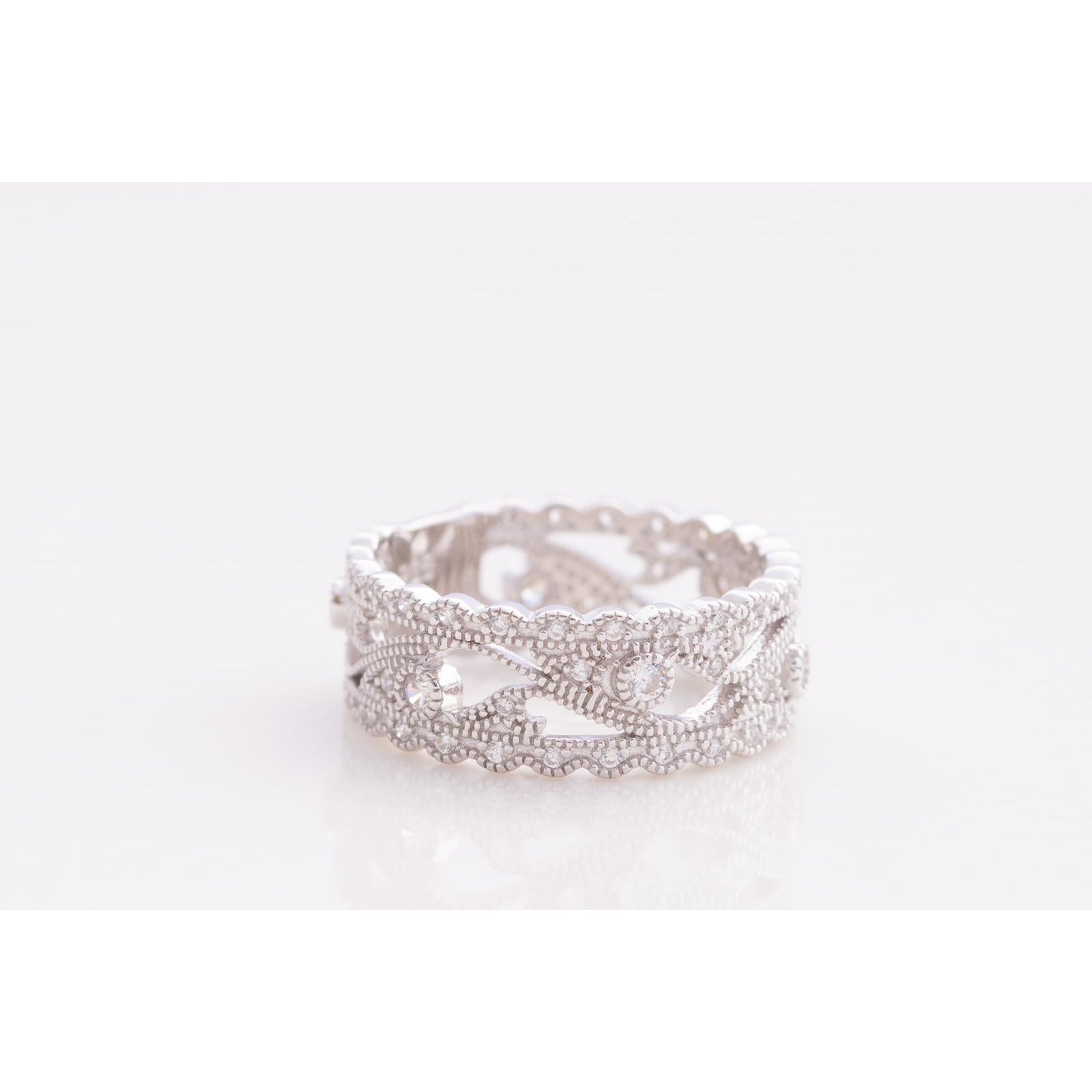 This Bridal Band is crafted from Sterling Silver and encrusted with sparkling White CZ for an eye-catching effect. The intricate lace detail adds a touch of elegance to this timeless piece. Wear it with pride and confidence.