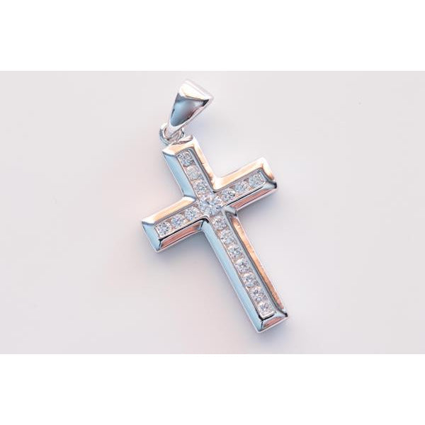 Complete your look with this beautiful sterling silver CZ Cross Pendant. The 14x20 mm pendant comes with a 50cm chain, making it the perfect piece to integrate into your everyday wardrobe. A sparkly addition to any outfit!