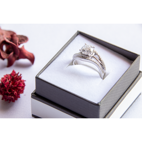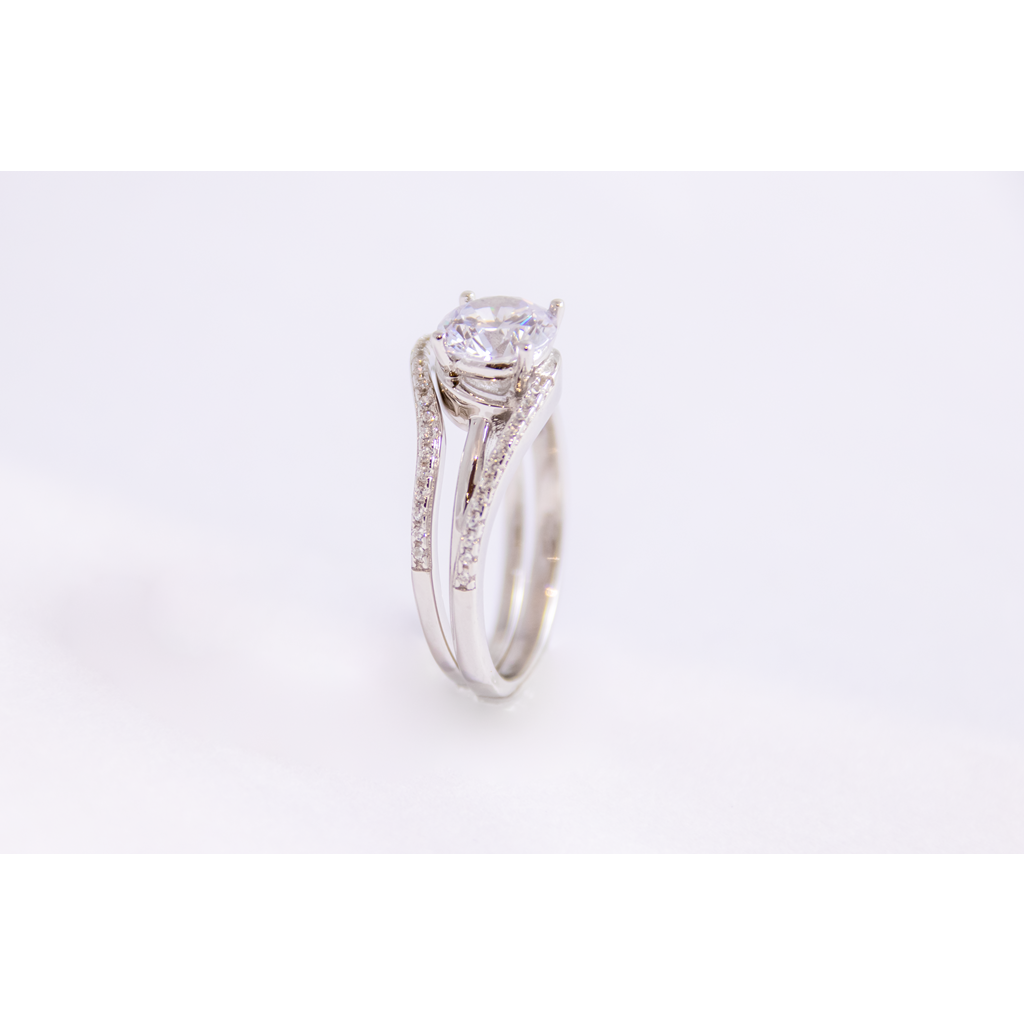 Sterling Silver Cubic Zirconia Engagement Ring with Wedding Band. Two separate Rings. The Wedding Band has a slight curve to fit in next to the CZ