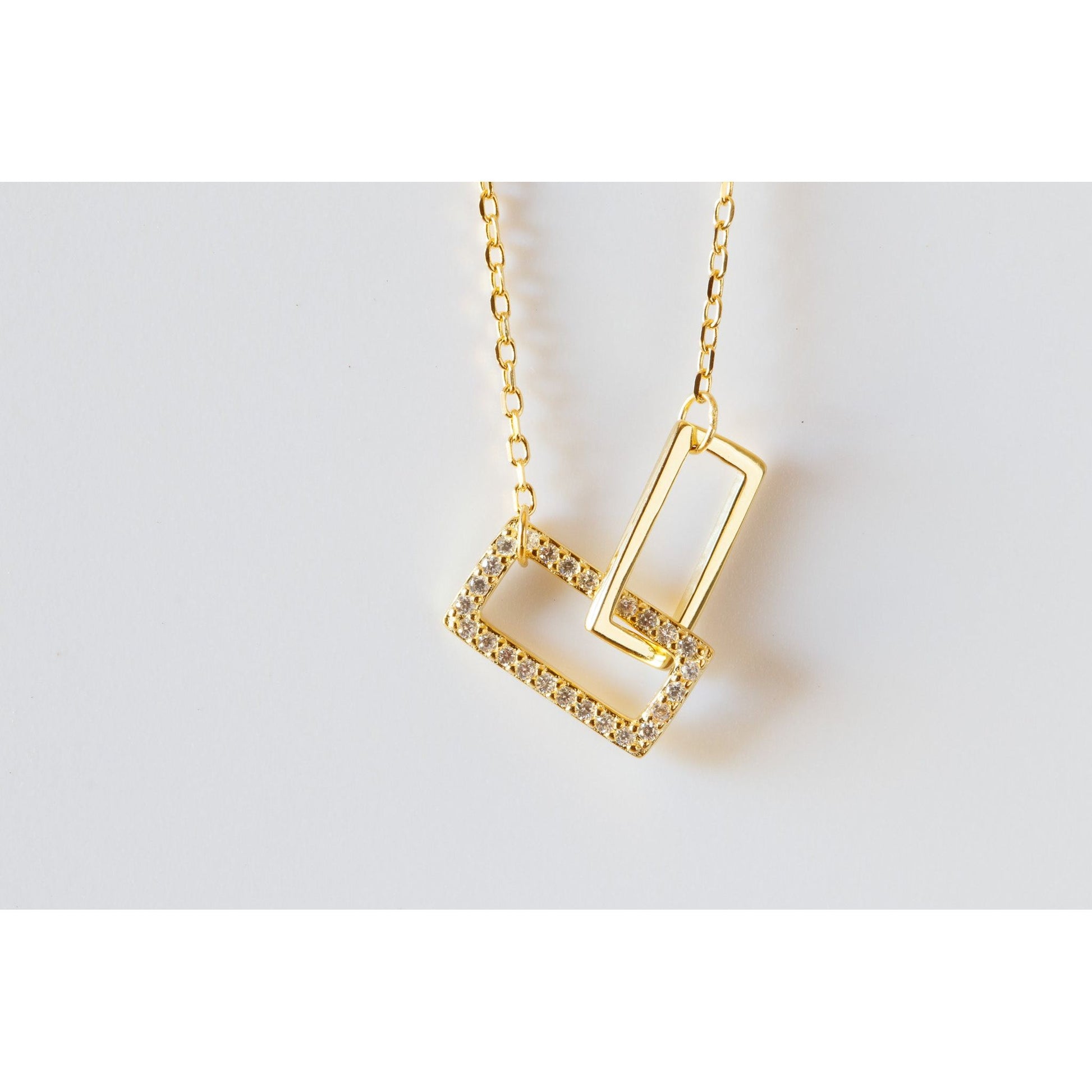 This versatile Geo Squares Necklace features two interchangeable rectangles, offering endless style possibilities. The clear stones elegantly complement one square, while the 40cm gold chain can be extended to 45cm for a perfect fit. Elevate any outfit with this unique and stylish accessory.