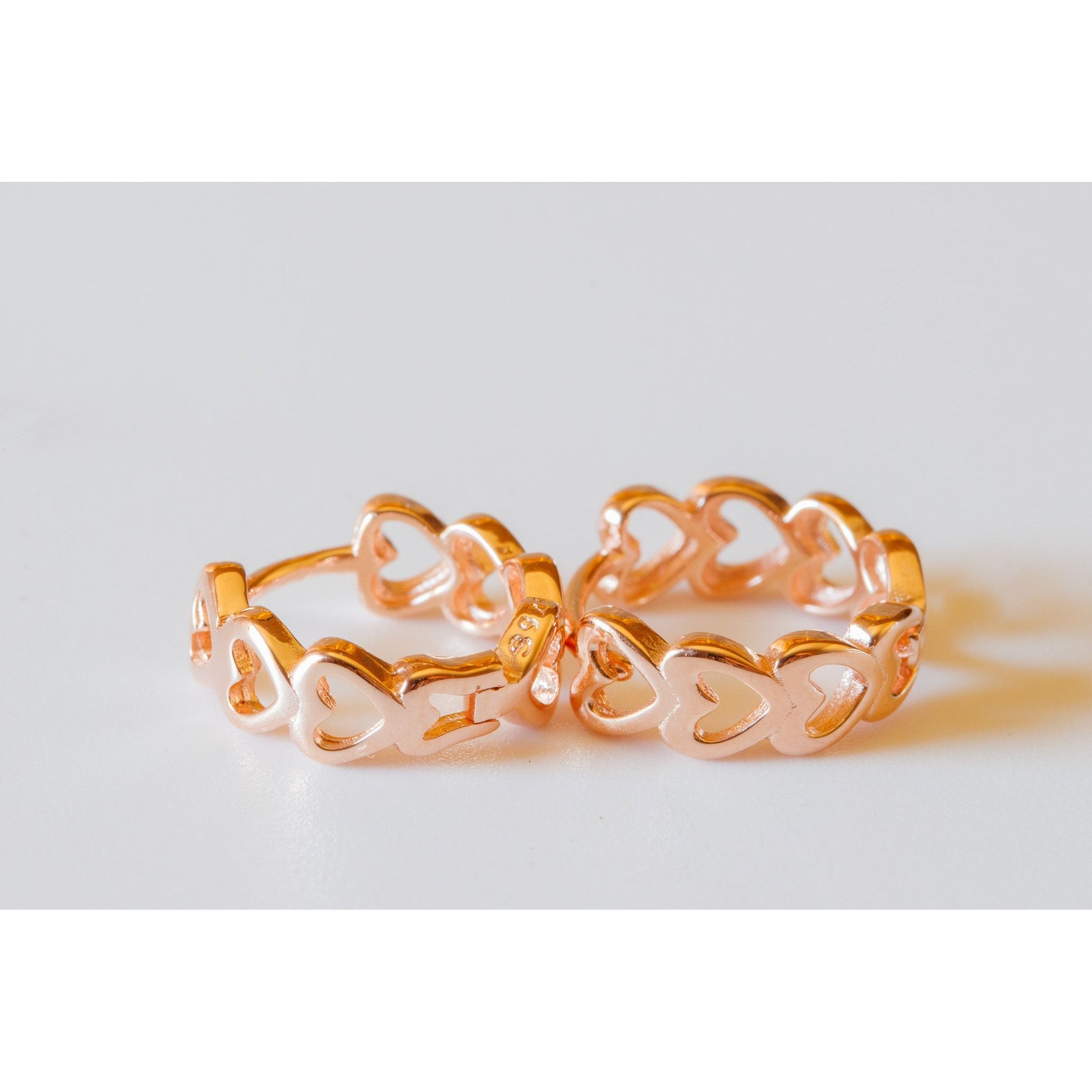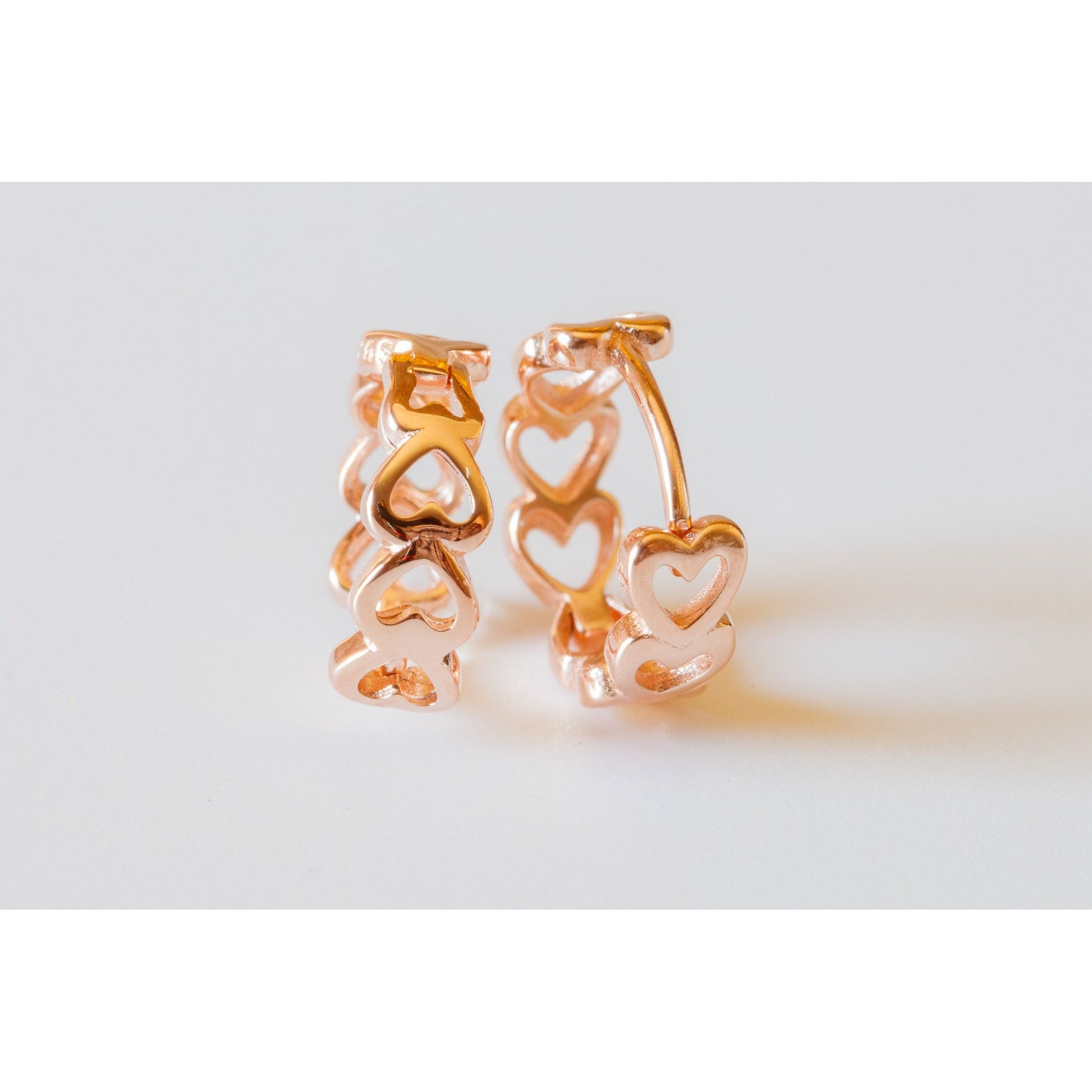 Discover the delicate charm of our Teeny tiny Heart Huggies earrings. These beautiful 10mm earrings are rose gold plated and are the perfect accessory for any outfit. Add a touch of elegance to your look with Heart Huggies.