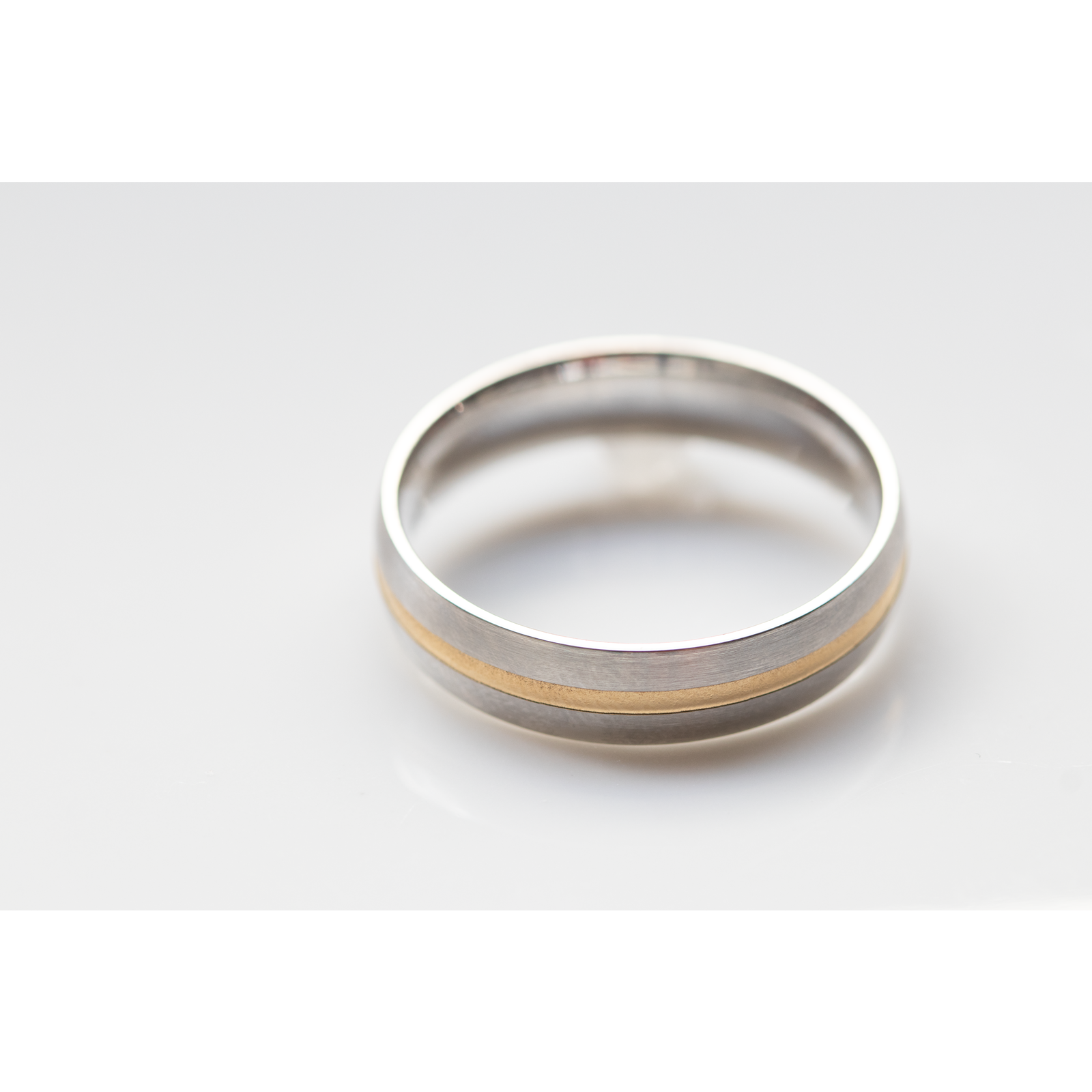 Achieve classic style with this stainless steel men's wedding band. The gold stripe adds a subtle hint of finesse, making it the perfect balance of style and sophistication. Its stainless steel construction ensures a scratch-resistant and long-lasting finish.